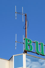Diese Sendeanlage befindet sich auf dem Dach eines Möbelhauses an der Straße M4.2 in Cazin.