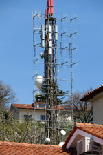 Antennenmasten über die Ortschaft verteilt, heute sind nur