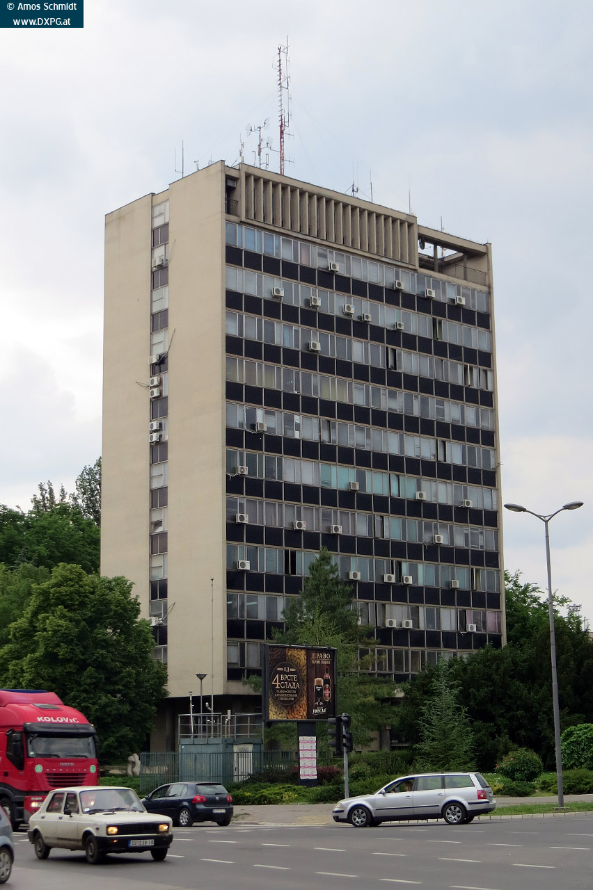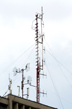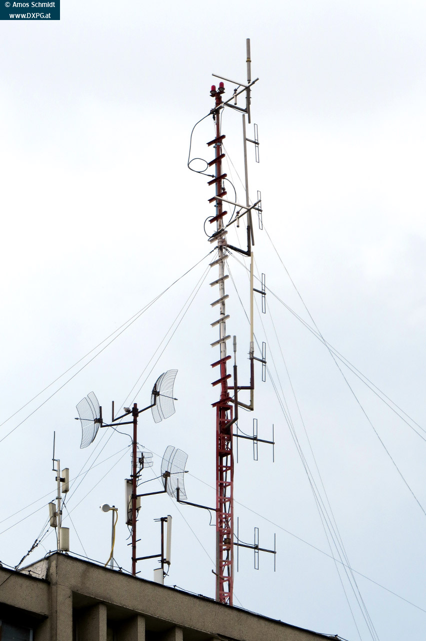 Diese Sendeanlage befindet sich auf einem Hochhaus in der Stadt Subotica in der Vojvodina.